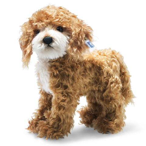 | 2021年新作定番。 ペットとして飼われる犬は私たちに多くの幸せを分けてくれます。 全身を美しいモヘアで覆われたリッキーはブラウンと白いのコントラストがとってもエレガントです。 シュタイフならではのこの表現力とリアルさを感じていただけると思います。 |